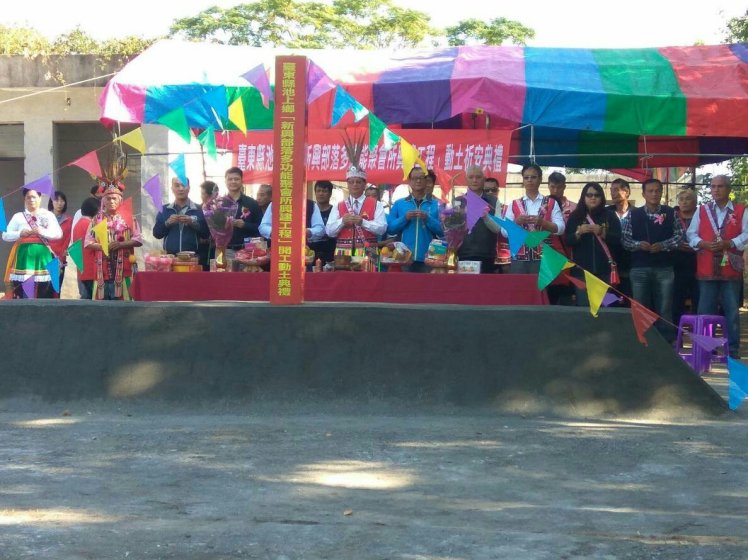 池上鄉新興部落聚會所於107年12月20日上午10時舉辦動土祈安典禮,這是池上鄉今年第三座興建動土,且占地最廣規模最大的原住民部落聚會所。在部落族人幾十年來的殷殷期盼、池上鄉公所積極撥地及爭取補助款、臺東縣政府原民處和原住民族委員會的大力支持下,作為新年大禮送給新興部落阿美族人一個文化建築新亮點。
