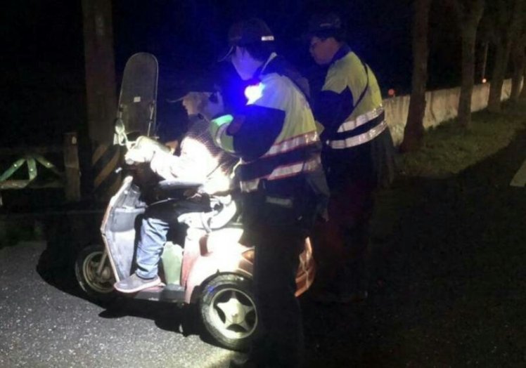 在一個陰雨綿綿的夜晚,有民眾去電110報稱「於臺9線上有民乘坐電動代步車老翁停滯在路旁,車來車往很危險,請警方前往協助」,池上分駐所值班員警接獲勤務指揮中心轉110通報後,隨即通報線上警網警員曾明元、陳信帆及林欣璇前往了解,員警抵達現場後,隨即上前詢問,原來老翁所乘坐的電動醫療代步車電力有些不足,而且天色昏暗又飄著小雨,看著疾駛而過的車輛,只好停在原地不敢橫越至對向,員警了解後,以手推方式,順利將行動不便乘坐電動醫療代步車的老翁安全推到對向,並跟隨在後,一路護送到其住所,老翁感謝路過好心民眾協助報警,也一再感謝員警的幫忙,讓他可以安全返家!員警也貼心的對老翁說,爾後要出門除了要檢視電動車電力外,也要在明顯處貼上反光貼紙或是穿著反光衣物,以保障乘坐安全!