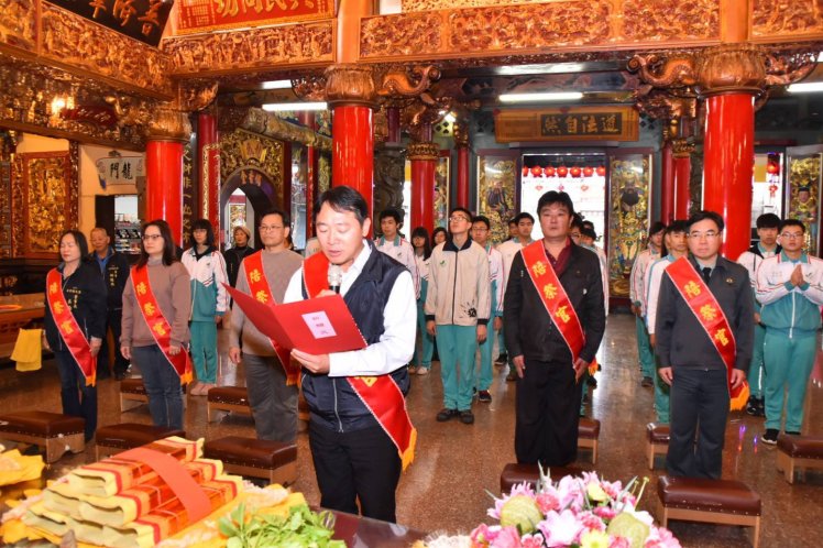大學學科能力測驗即將於1月25日與26日登場,江校長與家長會沈會長及教務主任、主任教官、導師率領28位考生,親自到協天宮文昌帝君為玉里高中考生祈福,祝福今年參加學測的高三學生考試順利、金榜題名、錄取理想學府,期許學生各個如千里馬般奮勉奔馳、學測時有最好的表現,展現實力,江校長特別感謝協天宮吳董事長、總幹事及全體常務董事的協助支持,使得儀式在莊嚴隆重圓滿順利。家長會長、吳董事長也致詞勉勵同學,勇於追求自己的夢想,勤學奮勉,展翅高飛,將來為社會國家貢獻所長。