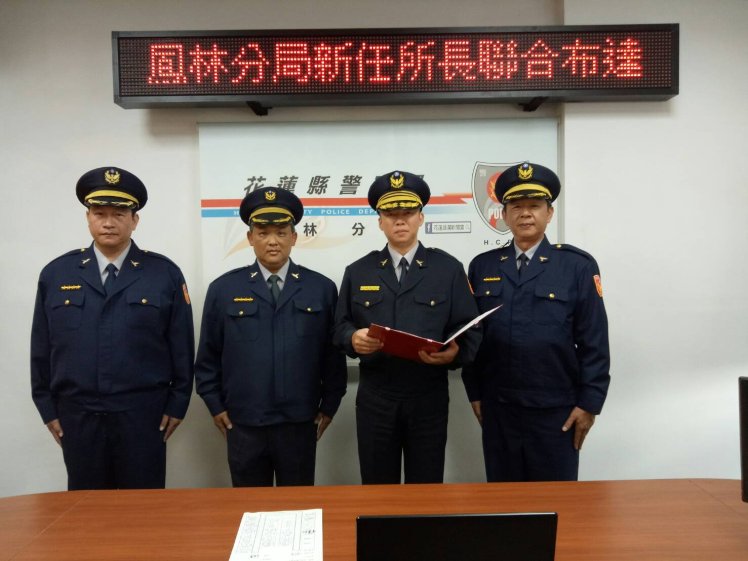 花蓮縣警察局鳳林警分局於今(4)日上午舉辦新任所長聯合布達,由警分局長王國峯親自主持,新任所長分別是富源所張宏振、新社所陳彥螢、港口所彭張政雄。三位所長都是歷練豐富,走馬上任後應可得心應手。