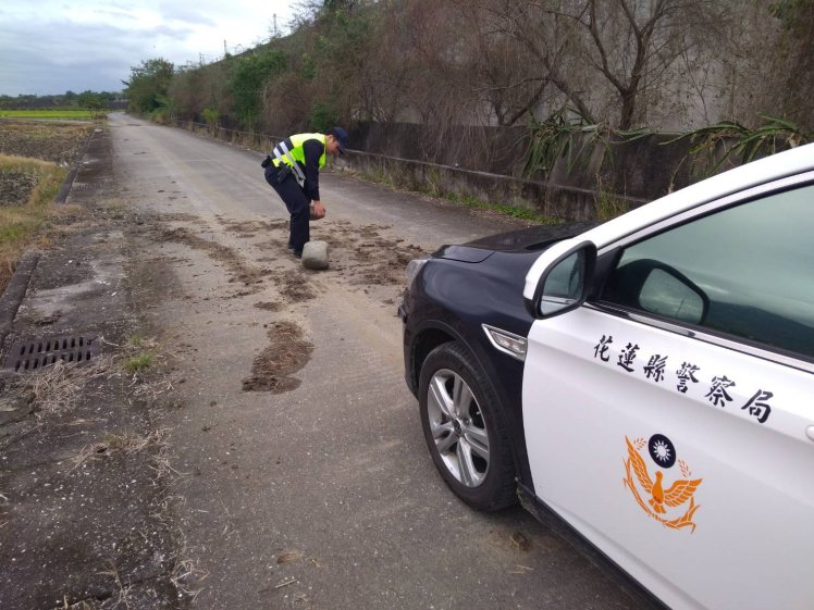 警員李政修表示,因年關將近常有返家探親的民眾,此產業道路為富里鄉東里村與玉里鎮長良里往來的主要道路,平日車輛繁多亦常有汽、機車、收割機、插秧及火犂等大型動力交通機械經過,深恐民眾駕車輪胎碾壓大石頭而導致車輛失控發生意外事故,李員當下積極主動本著為民服務及為防止交通事故的發生,立即徒手把道路上大石頭一一清除掉,讓道路交通順暢無阻,李員義行義舉深獲當地農民及過往民眾讚許。