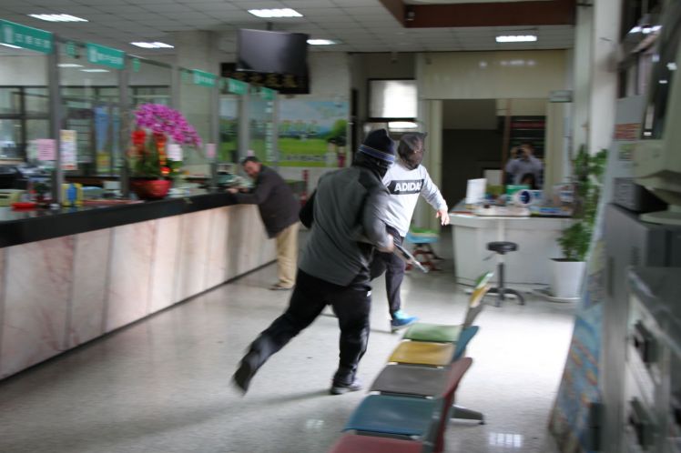 ,由2名便衣刑警假持槍蒙面扮搶匪,搶走農會大筆現金後,駕車逃逸,轄區北埔派出所接獲報案後於最短時間內前往案發地並封鎖現場,由行員告知歹徒之特徵、車號及逃逸方向後,立即向分局勤指中心通報,並由勤指中心調派線上警力於轄區各重要路段組成攔截圍捕崗哨及搜捕組沿線搜索,並連繫分局採證小組前往現場採證,分局長廖修鴻並現場全程坐鎮指揮。
