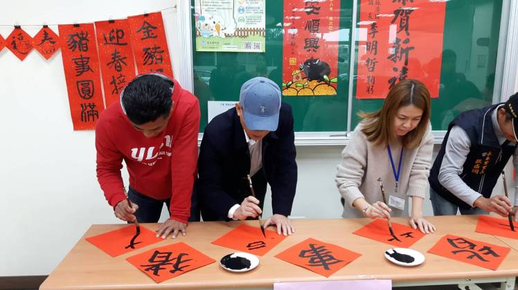 今年蘇澳鎮公所首推的「2019名家揮毫贈春聯,諸事吉祥結好緣」活動,特別聘請了宜蘭縣水墨學會書法家-徐子敏、吳英杰老師現場揮毫,民眾可排隊免費索取春聯;此外,另邀請陳俐莉老師,在現場指導民眾如何製作新春圖案版印DIY活動,一起感受年味。