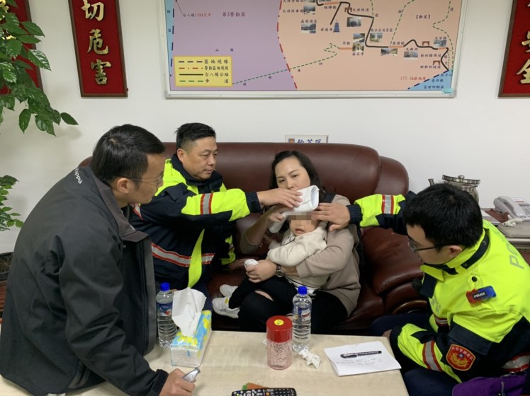 小朋友一醒來,虛弱的哭聲很快就回盪在派出所內,媽媽也不禁地喜極而泣,原本員警要以接駁方式送病童下山,但得知救護車已到綠水段了,且小朋友也已醒來,員警遂按兵不動,持續擦拭小朋友發熱的身體,直到救護車到達,才由消防員接手。