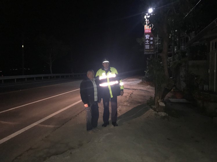 警員邱金雄表示,兩人在執行2-4深夜巡邏勤務時,發現一名長者在寒冷深夜中獨自行走於省道上,因深夜大型車輛較多,深怕其安全上有疑慮,便上前關心,經詢問交談,長者說不出自己姓名及住居所,身上也沒有攜帶任何身分證件,兩人遂便把其載返所暫歇,並提供熱茶讓其暖身,後輔以M-POLICE行動電腦人臉辨識系統,查詢到長者住在富里鄉石牌村,隨即開車把其安全護送返家歇息。附近鄰居表示,長者平日一人獨居,子女皆在外地工作,鮮少回家,其與附近鄰居互動良好,鄰居也都時常會關心查看身體狀況,沒想到在深夜大家都在睡覺時,竟然會跑出去,幸好分駐所員警巡邏發現,要不然天氣那麼寒冷,真的不知道會發生什麼意外。