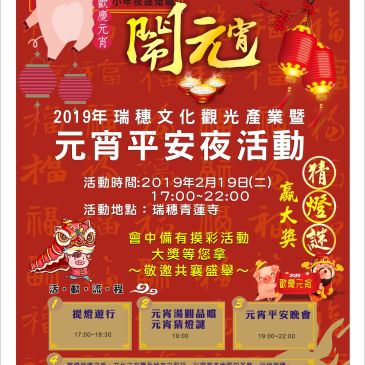 新聞中心/瑞穗報導 金豬迎來元宵節,歡樂一同鬧元宵,瑞穗鄉公所將於2月19日 (星期二)下午17時至22時於瑞 … More 瑞穗慶元宵系列活動 宏揚文化帶動觀光產業