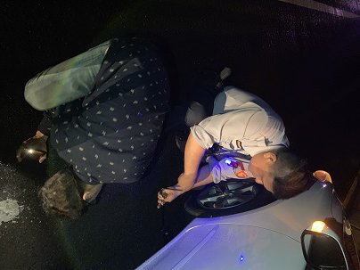 日前晚間20時許,多良派出所副所長洪昌耀、警員温弘彬等2人接獲通報,多良橋上有民眾車輛爆胎,警方抵達現場後,發現有一輛車子停在橋上南下車道,車上的一家人全站在橋邊孤立無援,而黃小姐見到員警到場後表示,全家當天從花蓮出發,一路玩到台東準備要返回台南家中。