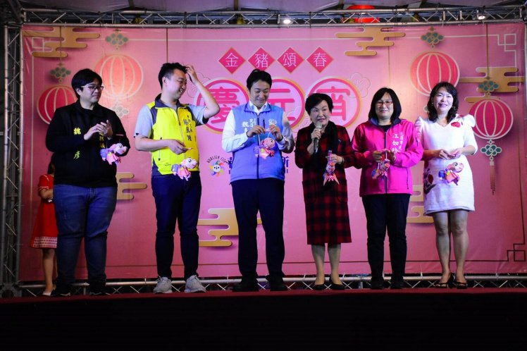 現場發放遠百花蓮店提供的七百個金豬燈籠,由於參與民眾非常踴躍,魏嘉賢市長特地加碼贈送三百個花蓮市公所的晃晃豬燈籠,總計送出了一千個燈籠,人手一支燈籠快樂過元宵。射燈謎的單元讓活動High到最高潮,只見燈謎架才剛推到台上,台下的人已爭相舉手搶答,六十道燈謎及腦筋急轉彎讓大家來挑戰,場面熱鬧不已。現場還有原住民與客家市集的展售,鬧元宵之外,還可逛市集,挑選喜歡的手作飾品。而在現場,市公所人員煮了一大鍋的湯圓,讓來參加活動的每一個人品嘗,祈求新的一年圓圓滿滿。