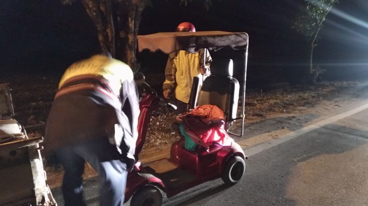 經了解,該李姓長者(87歲、住:玉里鎮松浦里),當天晚上駕駛電動醫療輔助車到玉里鎮觀音里找朋友聊天,回程途中因車子電力不足,導致走走停停,車子必須要停止運轉約10分鐘後才能啟動,但只能前進數公尺。夜間時分寒風凜冽,該路段又為彎道且無路燈,現場距離長者住家尚有3-4公里之遠,深怕其發生危險;且往長者部落住家道路皆為上坡,低電量電動醫療輔助車絕對無法爬坡;兩人遂引導長者至路旁明亮安全處所休息,請其等候不要再行駛。