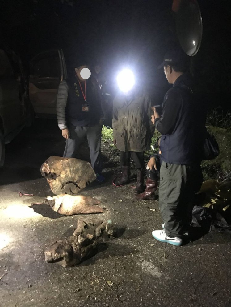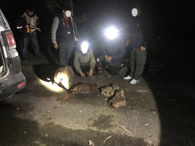 林務局花蓮林區管理處巡山員近期於秀林鄉磐石山區發現可疑車輛停放,可能有意圖從事不法民眾,經與保七總隊第九大隊花蓮分隊資深員警研判其行徑路線,進而佈署埋伏,在18日凌晨2時,埋伏人員發現嫌犯以車輛接續下山,立即通報下方警網攔截,途中吳姓犯嫌一度持刀拒捕,幸為優勢警力降伏,在犯嫌車上查獲4塊紅檜樹瘤,總重共77.5公斤,粗估市價約9萬元,全案將依違反森林法竊取林產物及刑法妨礙公務罪移送法辦。