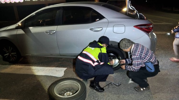 關山警察分局表示,池上分駐所所長廖建全與警員陳信帆執行夜間巡邏勤務,以主動積極的工作態度,發揮同理心及人溺己溺的為民服務精神,在深夜寒風中協助民眾以「手工」換備胎,讓民眾能夠安全駕駛,不僅防止可能的交通意外事故發生,也為警察團隊贏得民眾的稱讚與信賴!