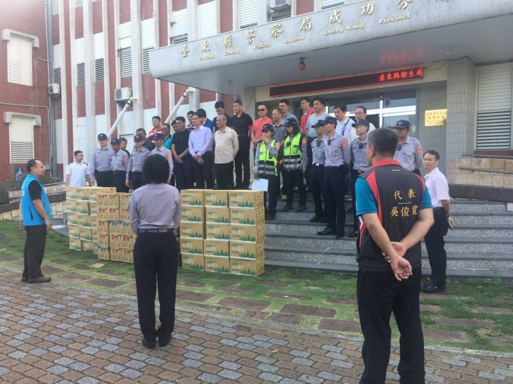 臺東縣成功鎮鎮長黃博昌及鎮民代表吳俊寬為感謝成功分局於元宵節遶境活動,投入大批警力維護交通及治安,讓活動圓滿順利落幕,特別送上泡麵及礦泉水以慰勞同仁辛勞!同時也對員警精神喊話,鼓勵警民合作共創美好幸福的成功鎮。