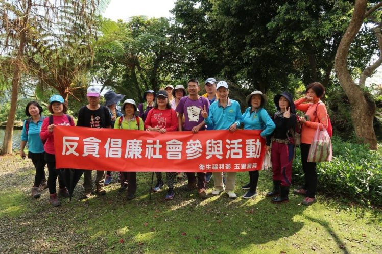 衛生福利部玉里醫院為宣導反貪腐倡廉潔,以喚起民眾反貪意識,於日前結合花蓮縣體育會健行委員會在花蓮縣吉安鄉向陽步道舉辦的賞櫻行程中,穿插反貪倡廉社會參與活動,現場安排廉政有獎徵答,並貼心準備實用宣導品作為獎品。