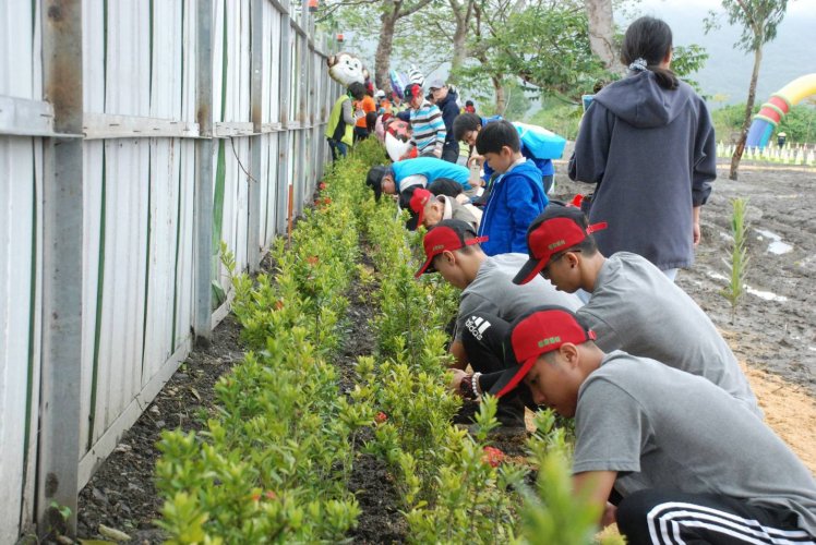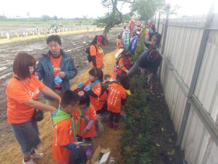而今日奇萊社區童軍團的21組家庭也熱情加入植樹行列,雖然近日大雨讓場地些許泥濘,但在家長帶領下,孩童身穿雨鞋手持小鏟,按著林管處同仁們的步步說明,一鏟一鏟細心種植苗木,透過掘穴、拆袋、放入植栽及覆土,用心體驗如何正確種下一棵樹。在爸爸媽媽與孩子們在一同植樹,體驗護林的過程中,除了齊心為環境盡份心力外,也凝聚了親子間的情感。