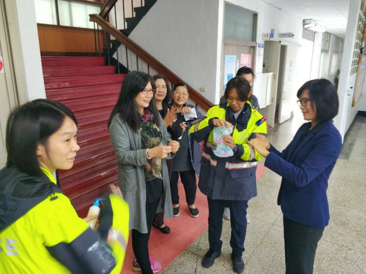 同為女性的分局長方秋梅于(8)日特至各單位慰勞女性同仁工作辛勞,並致贈手工特製之護手乳給每一位女性同仁,同仁接獲禮物後等不及拿回家就當場試擦了起來,護手乳優雅的薰衣草味道讓同仁覺得好放鬆感覺好幸福,同仁直呼「揪甘心」,送禮送到心坎裡。