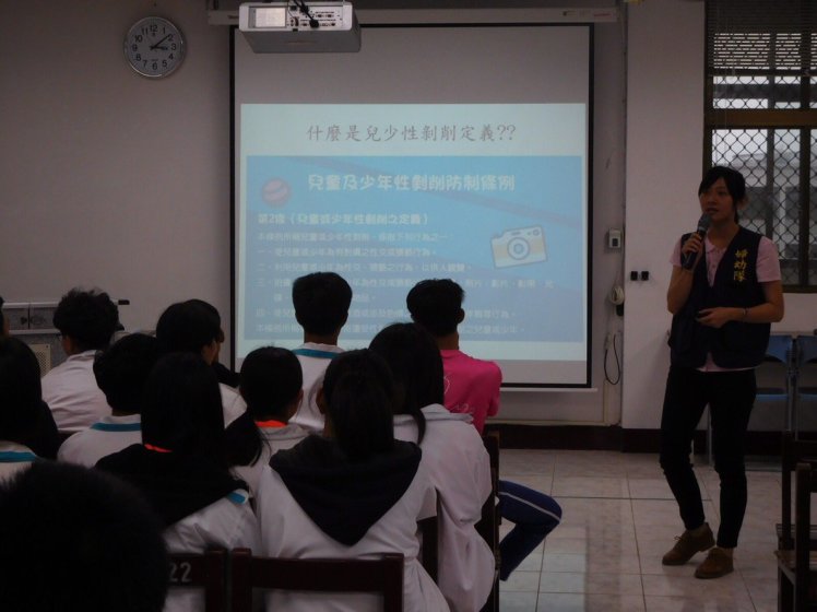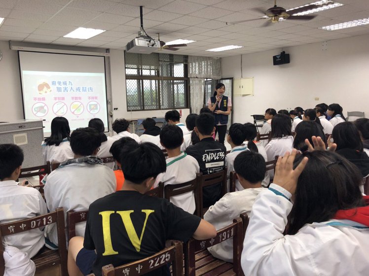 宣導中警員張秀雯也特別針對網路交友進行探討,提醒網路交友自我保護應注意事項,例如在網路上不留個人隱私資料、絕不和網友單獨碰面、不視訊進行裸露的行為或互傳私密影像,易遭對方側錄或挾照恐嚇,希望少年在使用網路時,能自我保護避免讓自己陷入危險之中。
