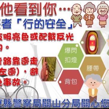 記者 盧金雄/關山報導 臺9線為貫穿縱谷南北的主要交通動線,惟部分路段較為昏暗,或未裝設路燈,使住戶在夜間出入 … More 關警分局長關心長者行的安全親送掛式爆閃燈