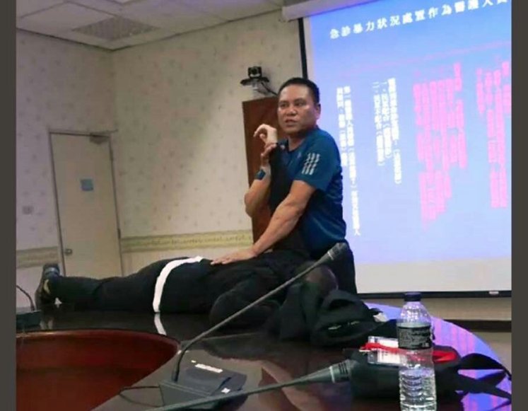衛生福利部玉里醫院為保障醫護人員人身安全,特別於日前邀請花蓮縣警察局玉里分局技術教官鍾金鑫,教授「急診暴力防制處置作為及擒拿防身術」。