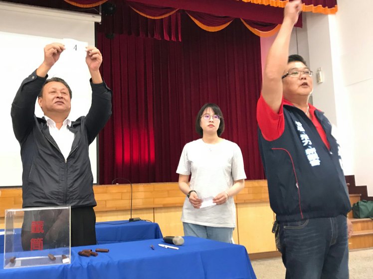 花蓮縣玉里鎮鎮公所今(8)日上午在藝文中心辦理玉里鎮觀音里第21屆里長缺額補選候選人抽籤作業,6名里長候選人在支持者陪同加油下輪流上台抽號次,場面熱鬧非凡。