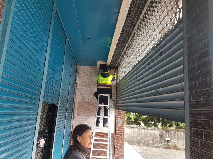 所長彭國城表示,兩人在執行路檢勤務時,發現廖姓長者匆忙的往玉里鎮方向走去,因長者年事已高,又獨自一人行走,彭國成所長便主動上前關心,並詢問長者是否有需要協助的地方,此時,長者娓娓道出所碰到的狀況。廖姓長者表示,自己一人獨居於高寮社區,子女皆在北部上班。在準備要到北部探望子女,把家中鐵捲門拉下上鎖時,卻發現鐵捲門故障無法拉下,所以徒步至鎮上找尋鐵工師父前來修理。彭所長兩人在了解狀況後,告知長者:因適逢星期日,大多鐵工廠皆休息未營業,去到鎮上可能會撲空,在長者憂心的不知如何是好時,彭所長等兩人二話不說,以警用巡邏車把其載返家,並協助查看鐵捲門無法降下原因。經廖員以樓梯爬上至鐵捲門上方查看,發現原來是麻雀在鐵捲門上方捲軸內築巢,廖員花費了一段時間清除鳥巢後,鐵捲門順利恢復升降,長者看到心心念念的鐵捲門復原後,頻頻地向警方道謝,非常感謝警察熱心的幫忙。