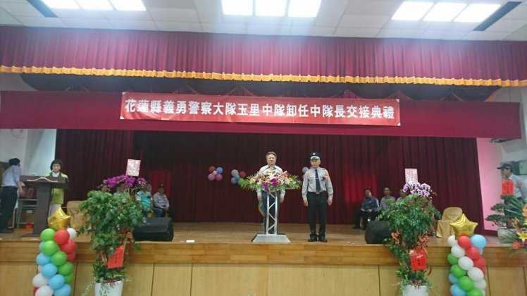 花蓮縣義勇警察大隊玉里中隊於4月9日上午舉行常年訓練暨卸、新任中隊長交接典禮,原任中隊長潘富民功成身退,由擔任義警中隊副中隊長林得家無縫接軌一肩挑起,將延續熱心公益,並與花蓮縣警察局玉里分局聯手深耕社區,協助執行犯罪預防、治安及交通維護等警政工作。