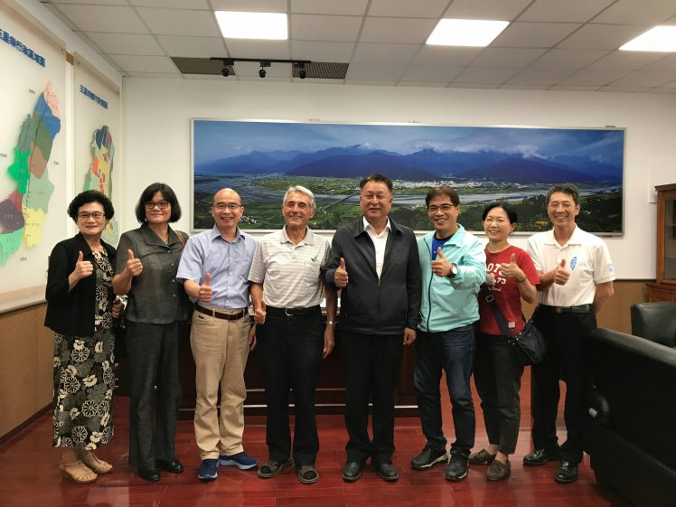 我國駐法國代表處經濟組組長賴作松、臺灣六堆哈旗鼓文化藝術團團長李榮豐博士、玉里天主堂劉一峰神父今(22)日至花蓮縣玉里鎮鎮公所拜訪鎮長蔡秋龍,雙方就文化、術、農業等議題進行交流。