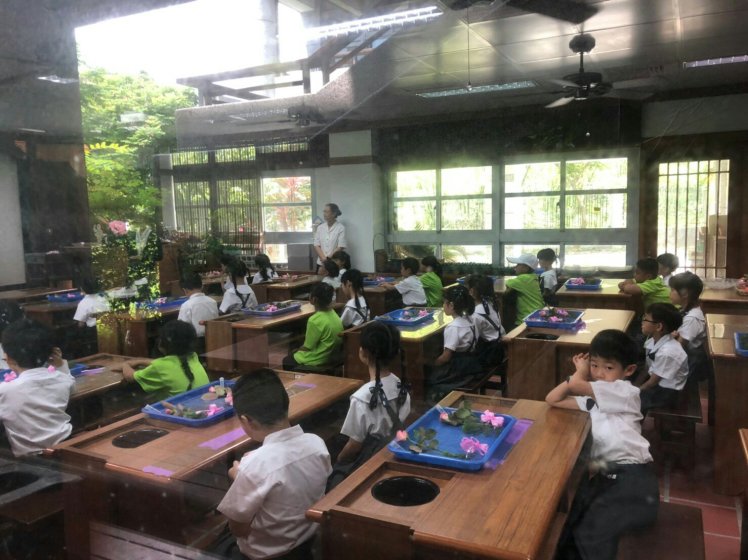 當天,長良國小同學依照年級進到不同班級上課,參與了使用全英語教學的外師英語課、還有修養氣質的花道課、人文課,當然也有國語、數學、藝術、生活等一般課程。