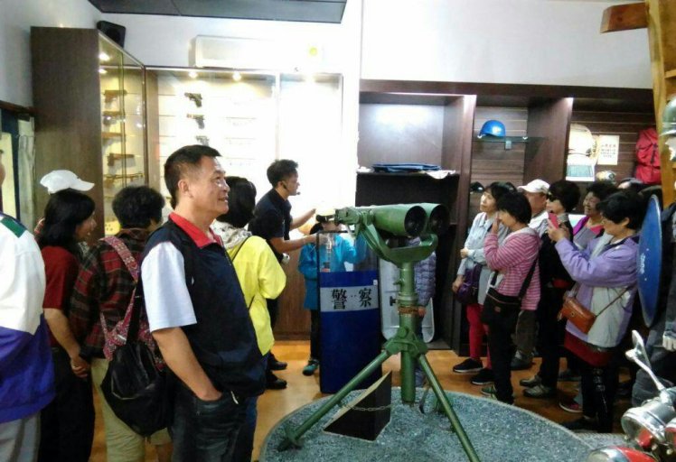 臺東市光明里及輔英科技大學師生約150人,於昨(5)日分別於8時及11時至關山警察分局參觀,受到關山分局導覽人員熱情的接待,一開始介紹巡邏車,民眾及師生們因為是第一次如此近距離聽到蜂鳴器所發出的警示聲,被這突如其來的聲響嚇了一跳,但都開心喊著「好大聲唷」!再進入到派出所,導覽人員介紹制服、手槍、手銬、警棍、無線電及防彈背心等應勤裝備,讓大家認識警察!之後進入警史館前,看到「公園化」的中庭,仿若置身風景區,都忘了這是警察分局,進入「警史館」大家也認真聽著導覽人員講述各式裝備的變化及歷史,認識許多「古早ㄟ」裝備,另也穿上維安裝備,變裝「維安警察」,拿著盾牌的模樣,有像「美國隊長」,學著警察往前推進的動作,嘴裡同時也「嘿!嘿!嘿」的喊著,興奮之情、溢於言表!該分局將冰冷的衙門,轉變成親民的「警」點,成功讓民眾「看見不一樣的警察」!