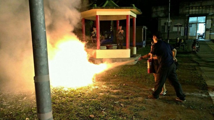 一.居民倘若發生火警案件時莫驚慌,要知道滅火器使用四步驟「拉、瞄、壓、掃」的觀念,可以進行火災初期滅火,以降低生命財產損失。