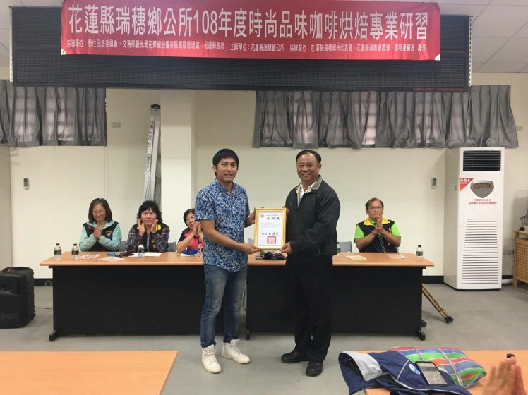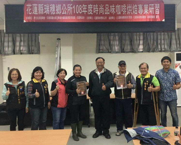 花蓮縣瑞穗鄉公所6、7日於瑞穗鄉農會童之園舉辦「108年度時尚品味咖啡烘焙專業研習班」,蒞臨貴賓有花蓮縣政府南區服務中心王麗秋副主任、瑞穗鄉農會總幹事黃盛皇及主任李瑞香、瑞穗鄉民代表會鍾湧春代表及林玉芬代表與70位有志增進咖啡種植、烘焙及行銷技術之咖啡產銷班班員及民眾參與,此次課程內容有專業課程講授及現場實際操作,教導農民咖啡栽種環境及管理、咖啡後製處理及杯測等課程,一同為推廣瑞穗優質咖啡而努力。