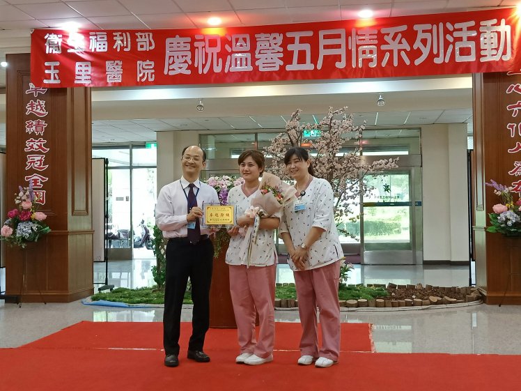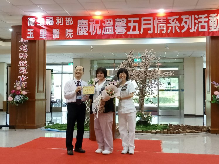 為歡慶5月12日即將到來的護師節及母親節,衛生福利部玉里醫院於日前舉辦「溫馨五月-感恩情」活動,表揚優良護理人員7名及照顧服務員4名、護理佐理員1名,各頒獎牌及禮券,用以激勵護理同仁士氣、提升工作效能,並藉由感恩頒獎及茶會活動,讓同仁情感交流與經驗分享。
