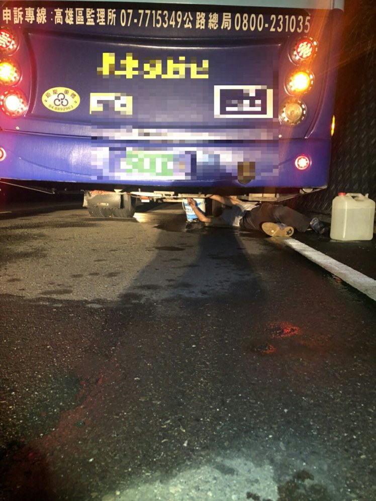 據遊覽車駕駛表示,遊覽車從台東發車欲至屏東潮州,行經大武路段時,發現車輛引擎溫度異常,司機擔心會造成危險,將車輛停放在路邊,自己爬進底盤檢查,才造成警方誤以為發生事故。還好當時車上沒有乘客,駕駛表示可以自行更換水箱水管,不需要拖吊車協助。只是遊覽車水箱沒水,依然無法行駛。由於此路段光線不足,加上天空正下著雨,警方為預防發生交通事故及駕駛安全,便協助遊覽車司機至附近加油站裝水供應補給,車輛也恢復正常,順利啟動,繼續往屏東前進。駕駛表示,非常感謝警方熱心協助。