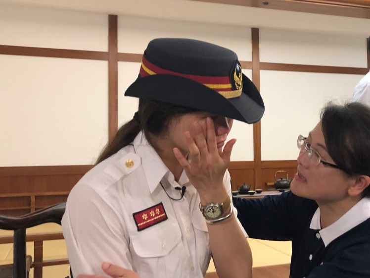 其中一位女消防員呂子暄,擔任消防工作已第5年,當初是為了助人而投入這份工作,在浴佛典禮中,聲聲祥和音樂,讓她回憶起2018年「0206花蓮震災」時,一起跟慈濟志工投入救災的過程,不禁潸然。