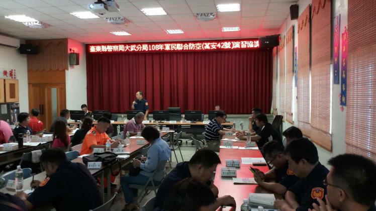 108年軍民聯合防空「萬安42號」演習,將於5月29日(星期三) 13時30分至14時實施正式演習。為使此次萬安42號演習順利圓滿,達到零缺點的目標,大武警分局於昨(14)日下午在大武分局三樓禮堂召開演習期前協調會,會中就演習時各單位應配合工作事項等逐一進行討論,並完成任務分工。