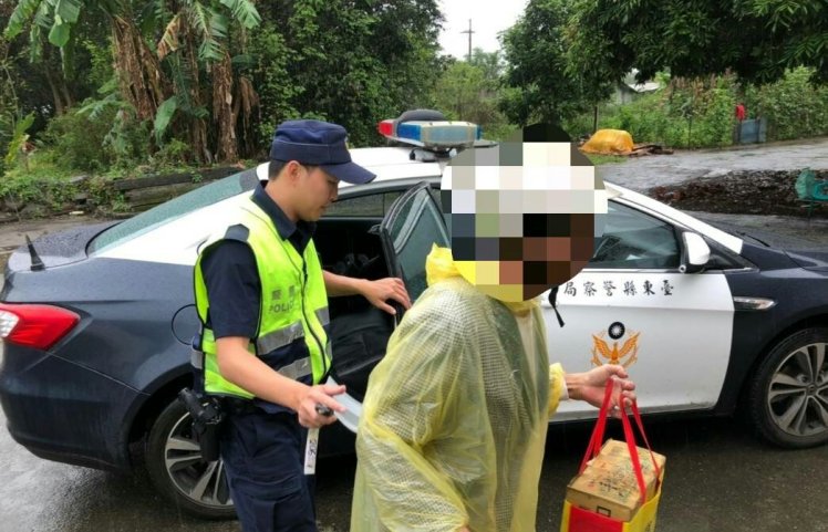 「嘩啦!嘩啦」!昨(20)日午後,縱谷地區突然降下磅礡大雨,這突如其來的陣雨,讓路上行人瞬間淋成落湯雞,車輛的雨刷更是開到「緊繃」,才能看清前方道路;於此時,有一騎乘機車的老翁,因為道路濕滑,且看不清路況,怕會摔倒,遂穿著輕便雨衣向值班員警求助,值班員警隨即請巡邏警員楊政勳及蔡誌昇,以巡邏車載送其返家,家屬看到警車到家門前,以為老翁發生意外,結果恰好相反,是員警將他平安送回家,老翁及家屬也一再的向員警表示感謝;同日傍晚,有一喑啞人士坐在分駐所門口前的樓梯,因其無法說話,員警以行動載具M-Police「人臉辨識系統」查出身分後,隨即以巡邏車載送其返家,焦急的家屬正好欲出門找尋,結果員警就已將其平安送返家了,對於員警熱忱及貼心的服務,一再的說「金甘蝦」!
