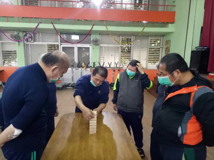5月主題活動-疊疊樂益智團康,治療師藉由三人為一隊,以組隊、團體競賽的方式,讓彼此學習相互合作,盡情發揮自由組織建構能力,讓個案覺得擁有主導權,任務雖具挑戰性但不感到挫敗,讓其享受樂趣,此次活動獲得第一名的小萍充滿自信地表示「透過積木組合,能組織我空間組合概念、手眼及細動作協調的能力,是一個很棒的團康遊戲,這是我平時所缺乏的生活經驗。」
