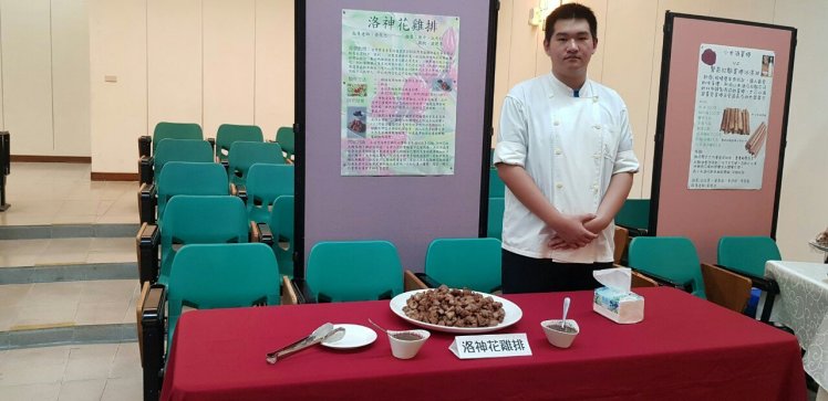 另一組學生陳平、江元仁、蘇凱、潘建青,則以時下年輕人最愛吃的雞排為想法,結合洛神花蜜餞製作成洛神花雞排。原先採用食用色素粉,但因味道不足改用洛神花蜜餞,利用軟炸的方式,食材沾麵糊炸,保留洛神花和雞排的風味。