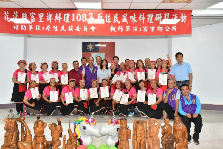 花蓮縣富里鄉公所於今(25)日上午11時,舉辦原住民風味料理研習成果展,這次成果展由民原課主辦,課長陳淑貞親自帶領家政班班長張月嬌、湯秋蘭及20位家政班同學共同展出八道風味餐。與會嘉賓有富里鄉長陳榮聰,富里鄉民代表葉家鴻、孫永承、林夢柔、杜金模、潘務本、徐秀枝、何貴香,頭目聯誼會會長陳盛發,東里村長袁聲銓,萬寧村長徐賢淵,竹田村長陳勝駿,新興村長劉文祥,豐南村長陳正雄等齊聚一堂共襄盛舉。