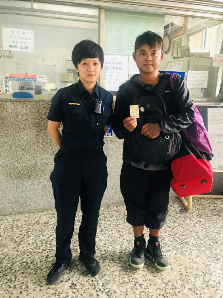 日前上午11時許一位滿頭大汗,身上扛著三個大背包的男子至大武警分局達仁分駐所向警方報案表示,「我的錢包遺失了,請警方協尋」。警員黃瓊慧獲報後依規定受理外,還購買便當、飲料為其果腹,並幫助該男子購買返家車票,資助新台幣1仟元,使男子得以順利返家。