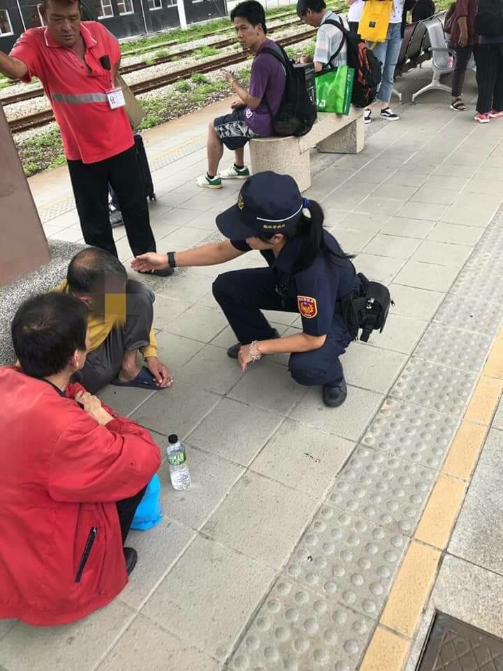 內政部鐵路警察局花蓮分局玉里派出所警員鍾霈臻於昨(31)日13時35分許接獲玉里火車站站務人員來電請求協助,表示於第二月台發現有一民眾疑似身體不適倒臥於地面上,懇請本所派員協助。