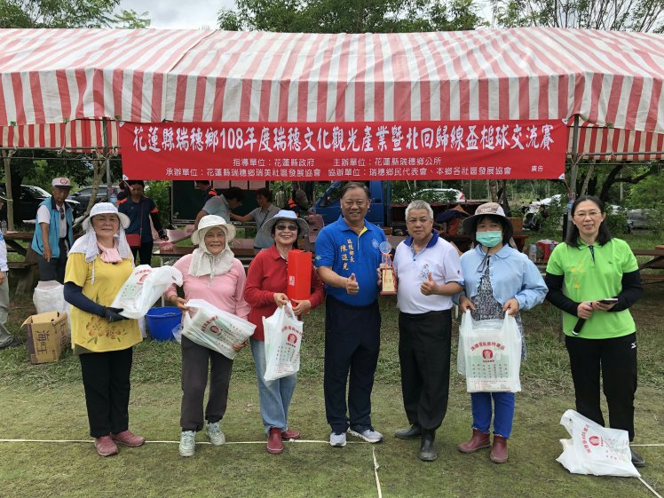 花蓮縣瑞穗鄉108年度瑞穗文化觀光產業暨北回歸線盃槌球交流賽於今(1)日在瑞美運動公園進行精采賽事,活動會場有花蓮縣政府南區服務中心副主任王麗秋及副主任周玉梅、瑞穗農會總幹事黃盛皇,瑞穗鄉民代表林玉梅、鍾湧春等貴賓蒞臨勉勵。