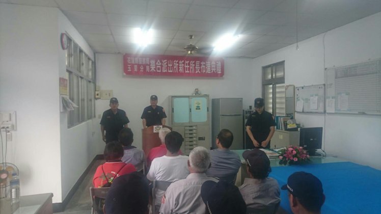 花蓮縣警察局玉里分局於昨(3)日下午舉行竹田派出所、東里派出所、樂合派出所三位新任所長布達就職典禮,分局長呂育騰因另有公要,委請副分局長潘志華主持;轄區代表、村里長、國中、國小校長、警友會主任、顧問、地方士紳、協勤民力幹部、隊員及志工媽媽等皆獲邀到場觀禮,典禮簡單而隆重。副分局長潘志華轉達呂分局長勉勵3位新到任所長,必須迅速掌握轄區狀況,無縫接軌社區警政工作。