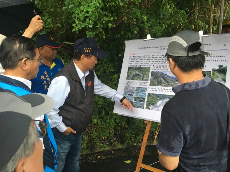 瑞港公路(花64線)7.5K因105年9月莫蘭蒂、馬勒卡及梅姬颱風,造成道路積水、邊坡滑落、土石流及路基坍方、下陷等災害修復工程,昨(4)日由立法委員鄭天財組專案訪查會議,召集行政院各主管機關:行政院公共工程委員會吳澤成主委、交通部公路總局第四區養護工程處林俊和副處長及玉里工務段陳鶴仁段長、花蓮縣政府李國雲科長等一行及瑞穗鄉長陳進光等辦理現場會勘與協調會。