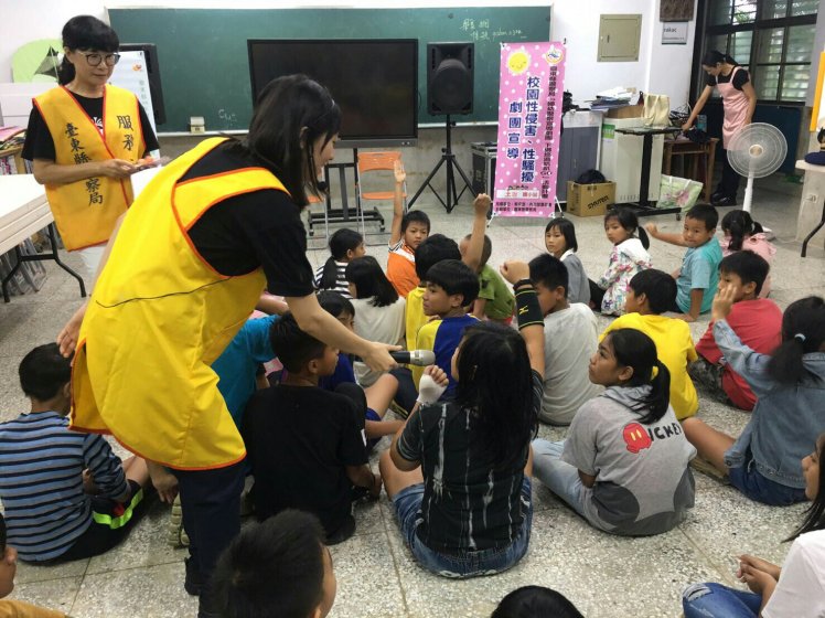 臺東縣警察局為防治校園性侵害及性騷擾等事件發生,除了婦幼警察隊員警及婦幼志工參與演出外,亦結合台灣安心家庭關懷協會,規劃自5月起下鄉深入社區國民小學實施校園巡迴宣導,活動開始由警察大頭偶進行帶動唱表演揭開序幕,接著透過戲劇的表演方式,傳達身體隱私處的觀念,除了小心陌生人之外,對身邊熟識的人以及環境也要有所警覺心,當發現有不適當的行為時,一定要拒絕並求助。此次活動透過活潑有趣的行動劇讓學童學會自我保護,實為有效的宣導方式。