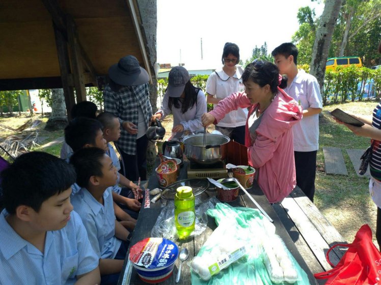 接近中午時刻,學校師生在派出所的露營區用餐,副所長莊俊男熱心主動地燒了兩大壺熱開水提供炊煮使用。師生都對此次的校外參訪感到獲益良多,不僅參觀了臺東最美麗的派出所露營區,更感受警察哥哥姐姐們的親切招呼和熱心導覽,直呼不虛此行。