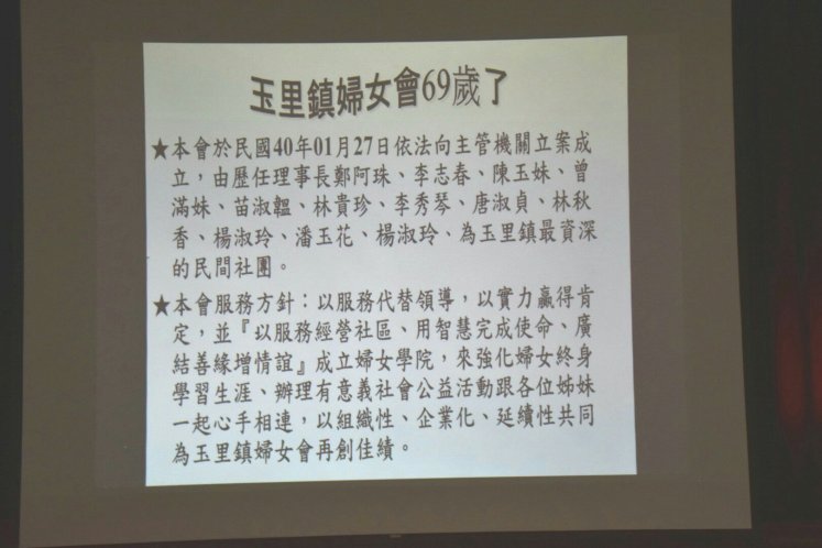 花蓮縣玉里鎮婦女會創會至今已69年,會員人數已達1500人,婦女會理事長楊淑玲因自身服務於台北榮民總醫院玉里分院,有感於許多年老的銀髮族因身體不便,需仰仗於外勞、子女的照顧,特別請花蓮縣政府、玉里鎮公所主辦,由玉里婦女會來執行 開辦「長青學子快樂GO」銀髮族樂活學習平台活動。此研習活動於今(12)日上午10時,在玉里鎮中正堂舉行開訓典禮,玉里鎮公所秘書曹克農受邀為開訓典禮來賓。