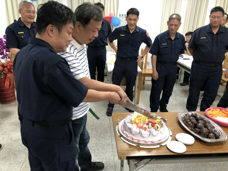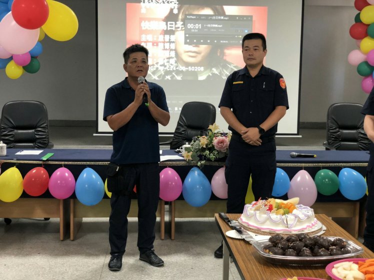 昨(21)日花蓮縣警察局鳳林警分局在分局聯合勤教時段,同時幫五、六月生日壽星舉辦生日會,由警友會大力協助提供蛋糕、米粉、滷味、水果及咖啡冰鎮紅茶等解渴勝品,讓盛夏在工作崗位辛苦流汗基層員警,頓感暑意全消,激動享受既熱鬧又溫馨的生日會。