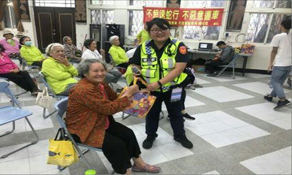 部落中的長者平時大多採步行方式外出,若遇天候不佳或天色昏暗時,用路人(行人、駕駛人)彼此間都會受到影響無法看清楚周圍狀況而發生危險,因此警員黃心美特別叮嚀這些長輩,平時出門應穿著較鮮艷衣物或隨身攜帶小手電筒增加辨識度,若有騎乘電動車的長輩,也應於車身黏貼反光條,增加駕駛人警覺性,才能降低意外發生率。