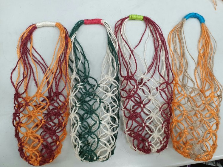 此活動邀請咕咕發芽咖啡驛棧黃尹恩老師教授「希望提袋」編織,歷經3場次共計12小時的教學,總計編織24件色彩鮮豔、實用又環保的「希望提袋」,各個可都是小朋友的精心傑作。