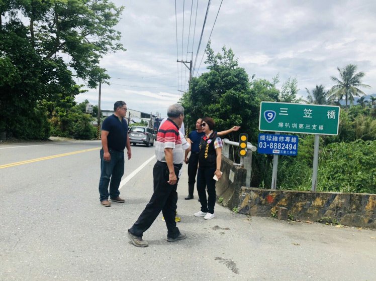 花蓮縣議會副議長潘月霞與花蓮縣政府水利科人員、三民里長蔡貴富、施工單位於今(3)日上午10:30分,親至玉里鎮三民三笠橋旁,召開三笠溪河道整理工程施工前說明協調會議。
